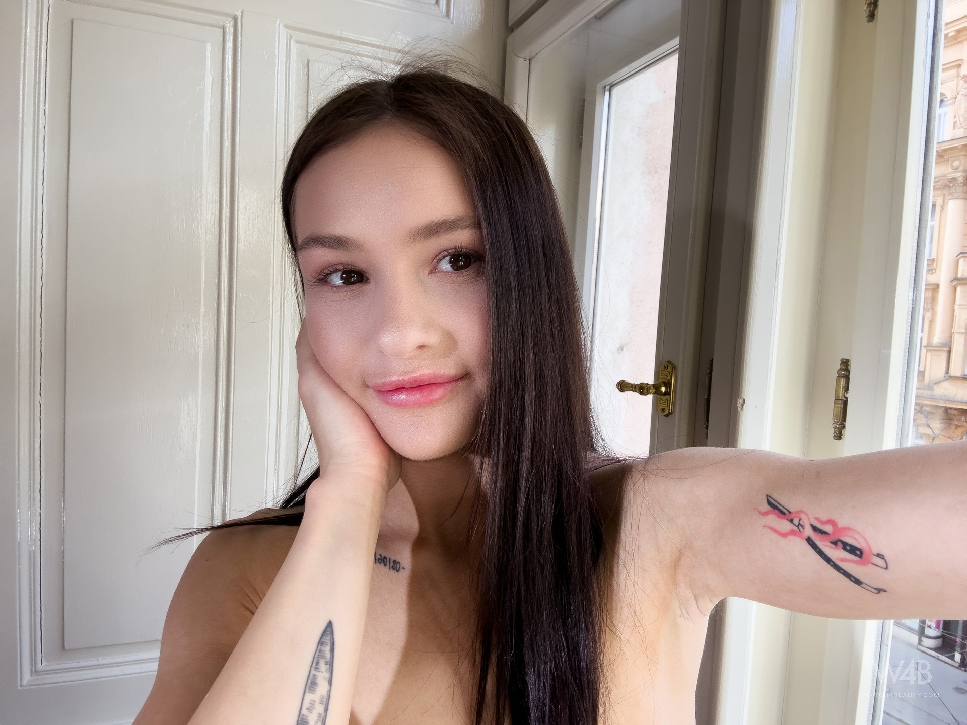 Ashley Lane Ashley Lane caresses her perfect body in front of the window